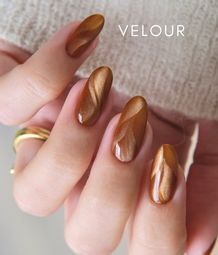 Showcasing magnetic cat-eye nail art, @amberjhnails has used Velour Magnetic to create golden cat-eye waves. This golden-brown gel polish brings sculptural dimension to the look.